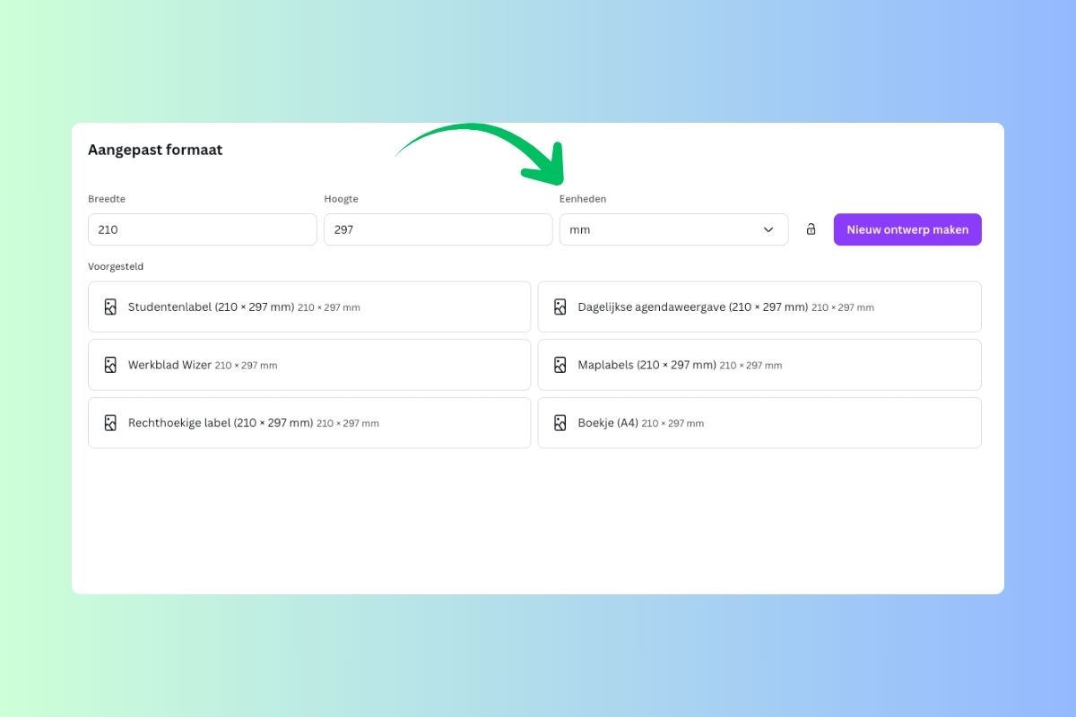 Formaat instellen in Canva