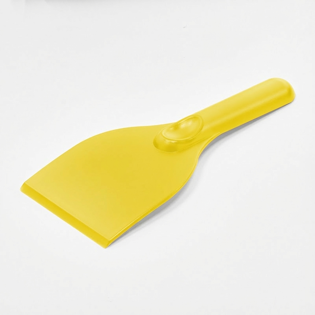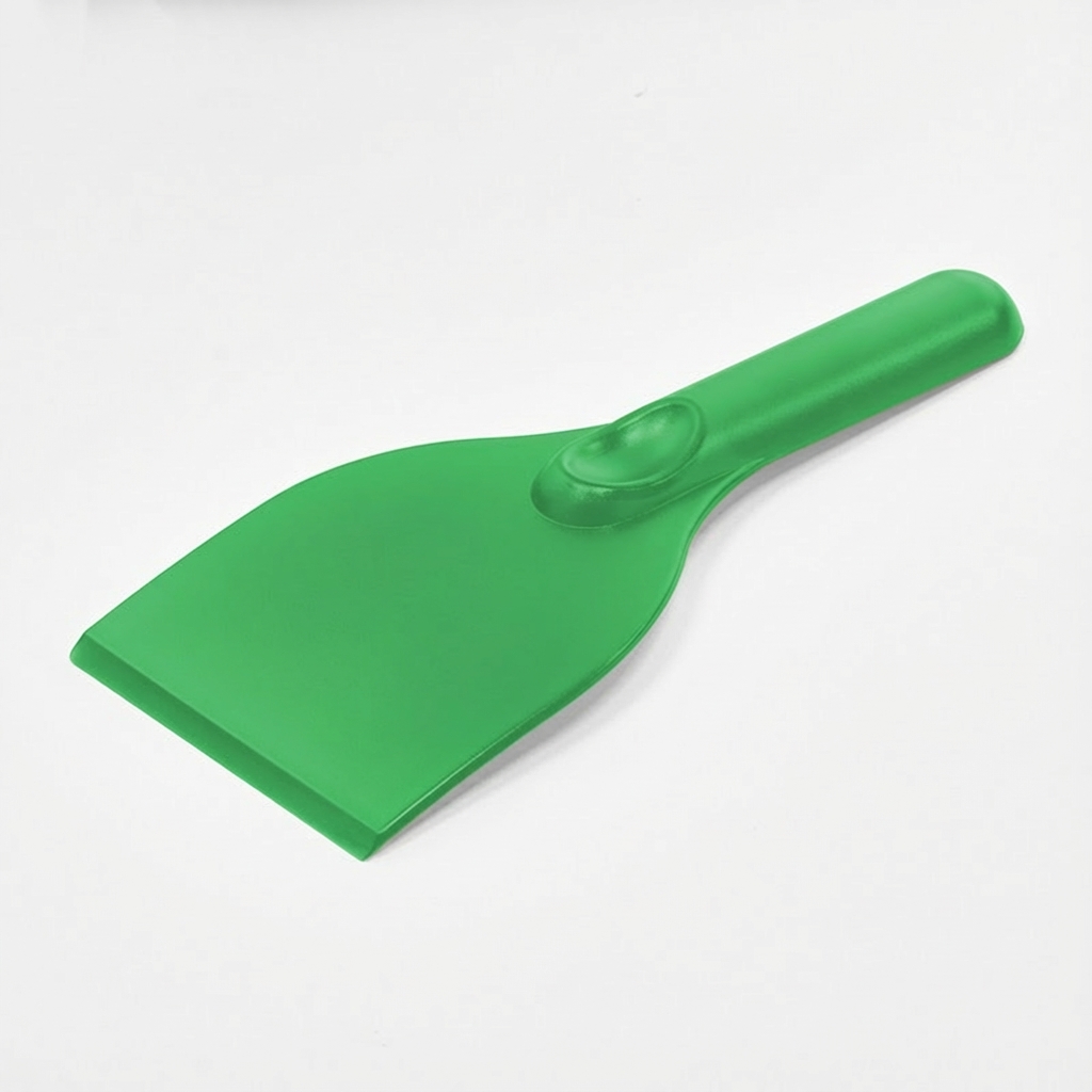 De ijskrabbers maken we van 46 gr HIPS plastic. Dit materiaal is licht, sterk en stijf. Je krabt moeiteloos door ijs en rijp en houdt toch een prettig gevoel in de hand. De randen liggen netjes afgewerkt langs het oppervlak zodat je veilig en effectief schraapt.